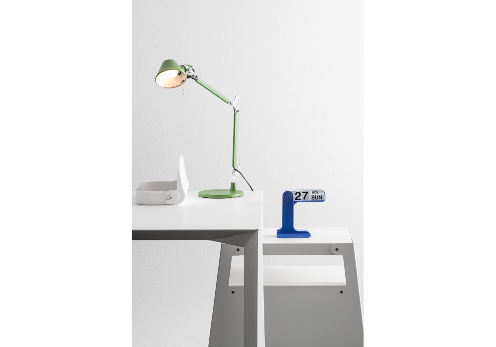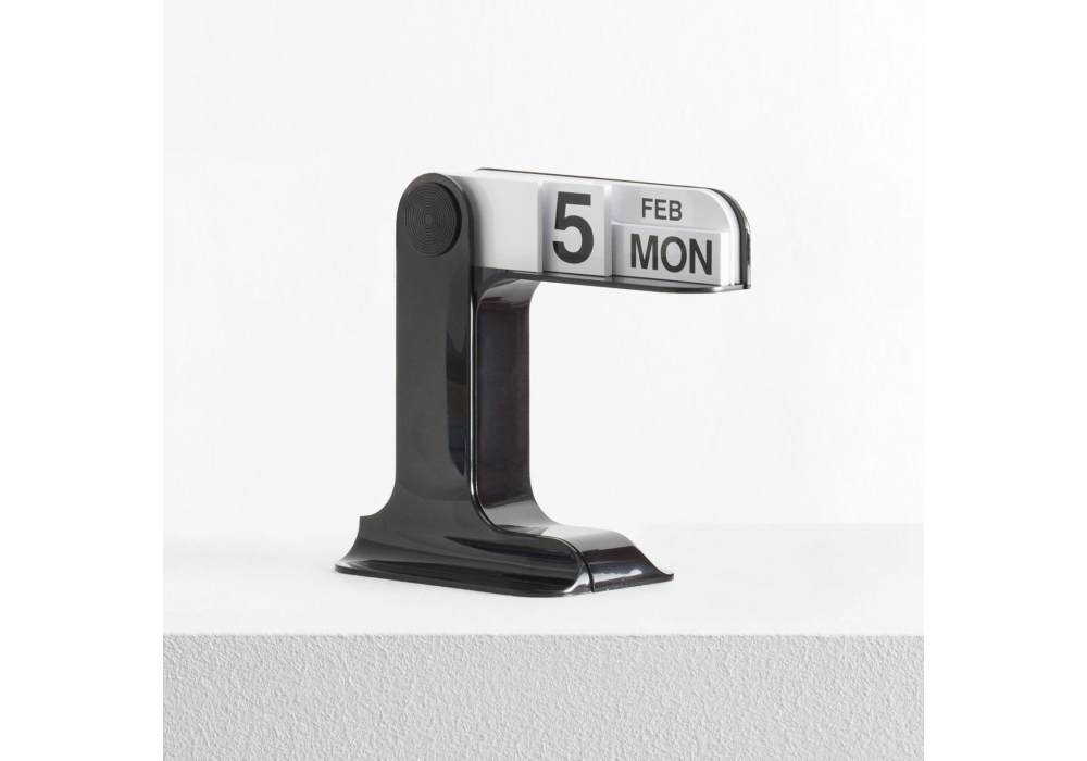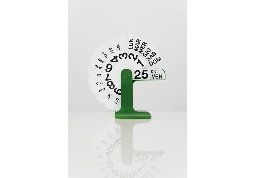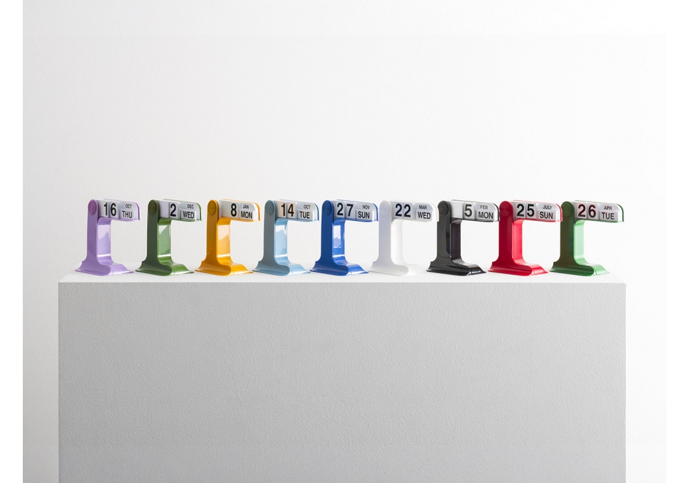 Timor von Enzo Mari für Danese Milano entworfen, ist ein ewiger Kalender aus ABS-Kunststoff mit PVC-Faltbändern. Verfügbar in mehreren Ausführungen.
