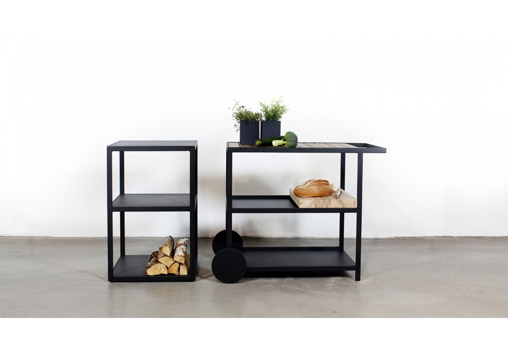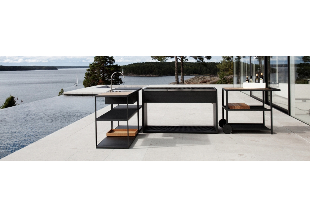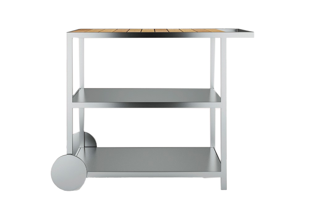 Garden von Broberg & Ridderstråle für Röshults entworfen, ist ein Servierwagen mit Struktur aus Edelstahl und Tischplatte aus Teakholz.