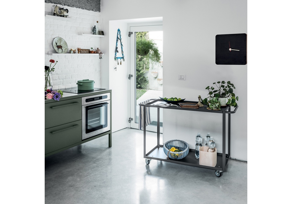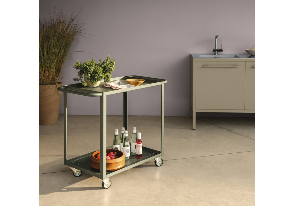 Run Outdoor von Dorino und Ferruccio Fantin entworfen, ist ein Outdoor-Arbeitswagen mit Kataphorese-Behandlung, der die Bildung von Rost verhindert. Er besteht aus zwei Etagen, einer oberen und einer unteren, einem Rohrgriff und drehbaren Rädern. Erhältlich in verschiedenen Ausführungen und Größen. Wahlweise Standardräder oder Räder mit passenden Scheiben.