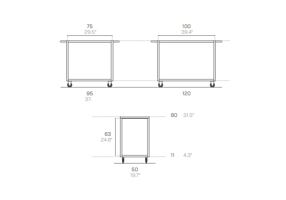 | Abmessungen | • 95 x 50 x H 80 cm; • 120 x 50 x H 80 cm |