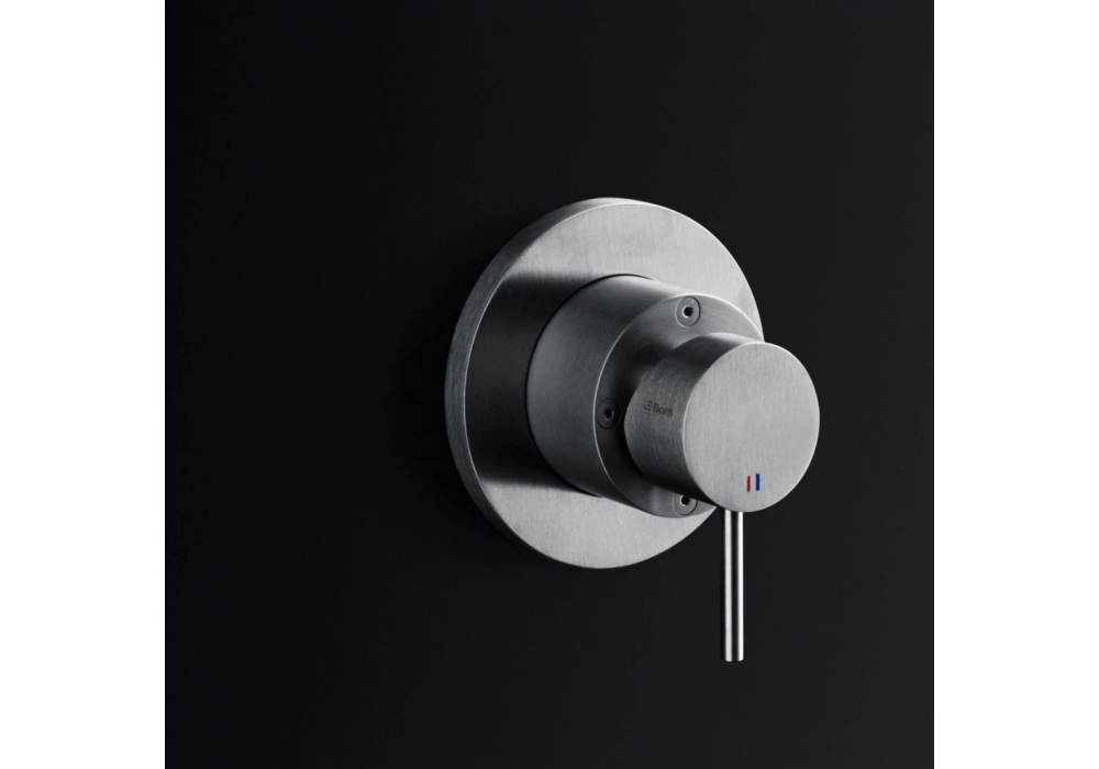Minimal, von Giulio Gianturco für Boffi entworfen, ist einer Armatur für Waschtisch - Dusch aus Edelstahl AISI 304 mit satinierten Ausfuehrung. Wandmontierte Version.