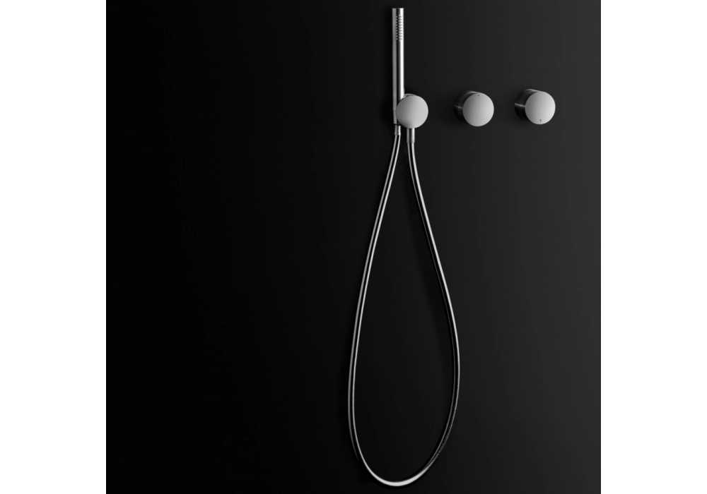 Eclipse, von Studiocharlie für Boffi entworfen, ist einer Wand-Unterputzarmatur für Dusche/Badewanne aus Edelstahl AISI 304. Erhältlich in satiniertem Edelstahl und PVD-grau.
