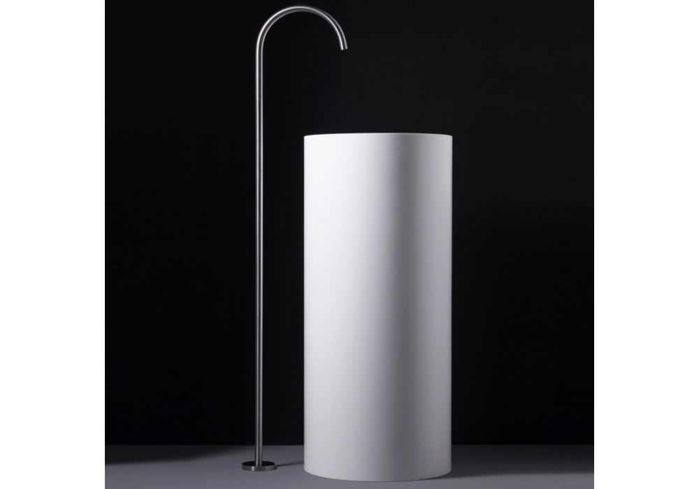 Wings, von Mario Tessarollo für Boffi entworfen, ist einer Auslauf für Waschbecke Zum Boden aus Edelstahl AISI 304. Verfügbar in satinierten Oberflächen.