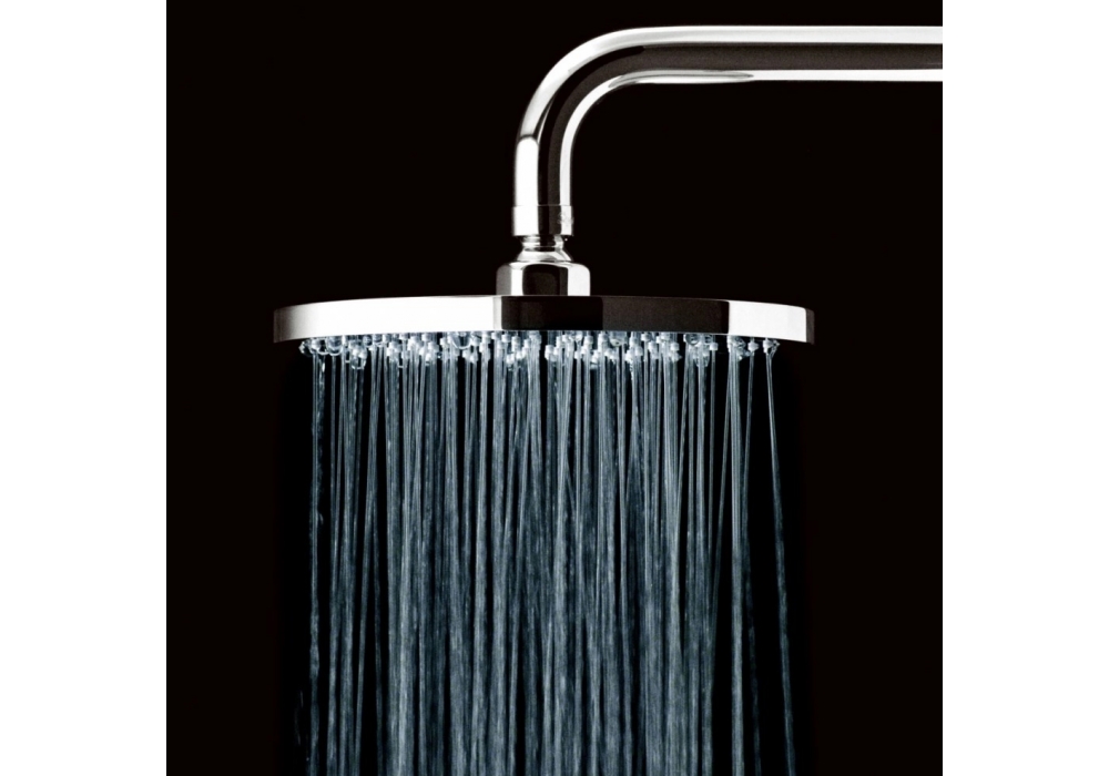 Liquid, von Piero Lissoni für Boffi entworfen, ist einer Wand-Kopfbrause aus verchromtem Messing.