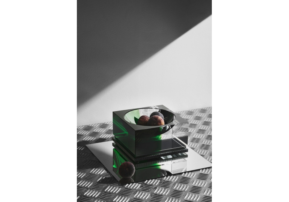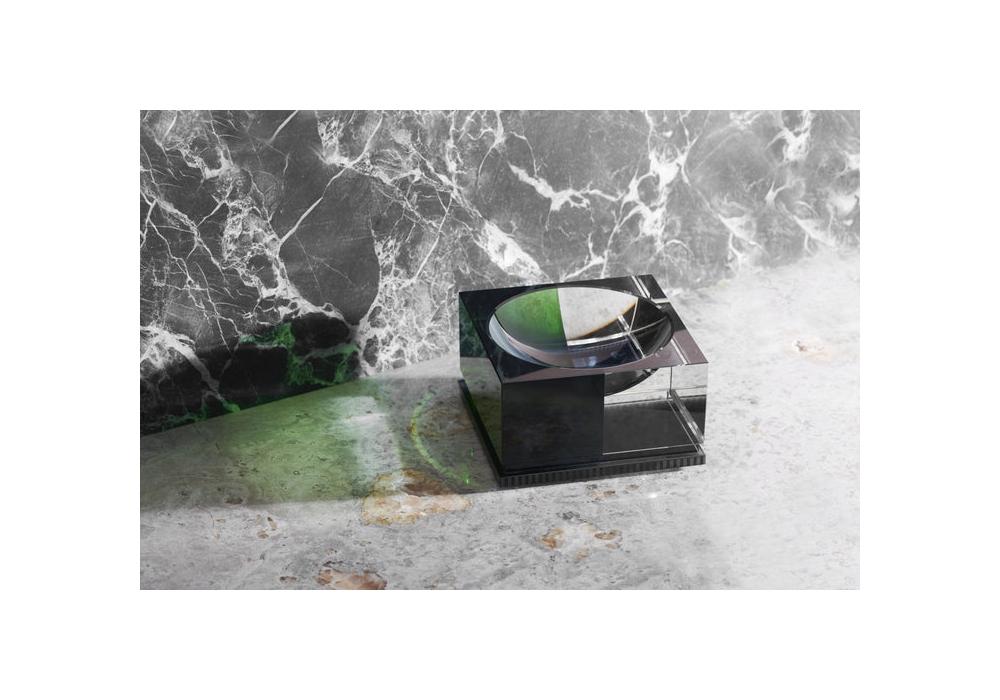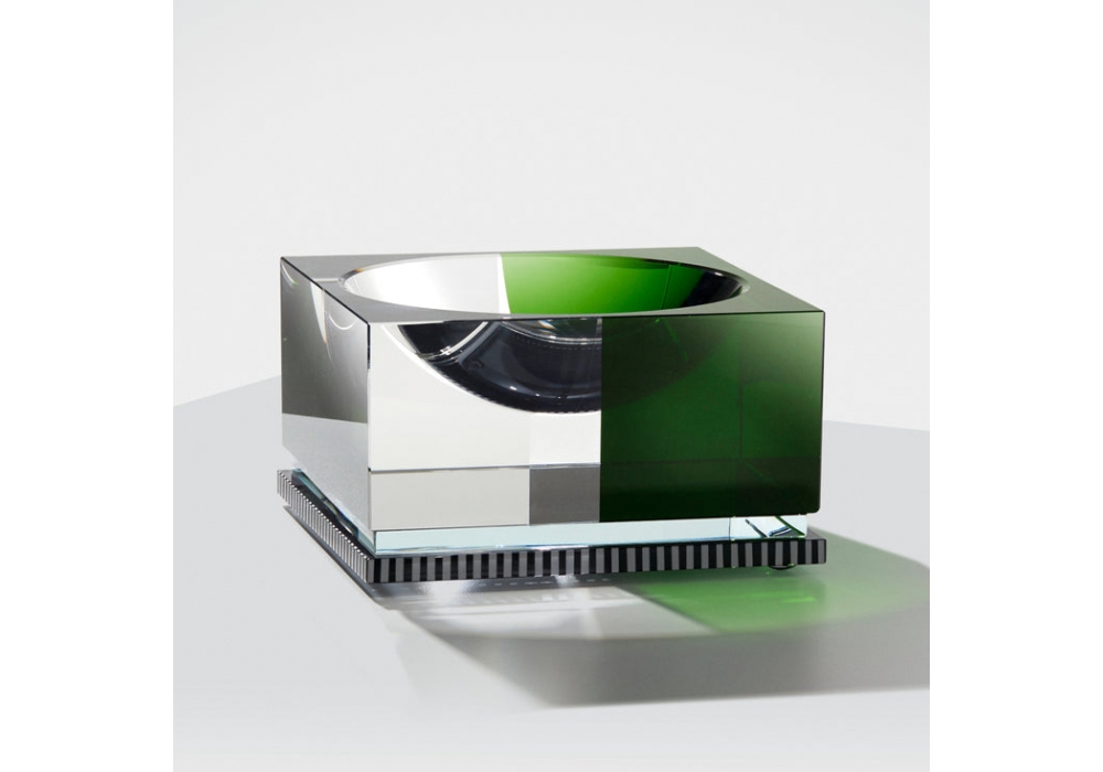Denver hergestellt und entworfen von Reflections Copenhagen, ist ein viereckiger Aschenbecher, der vollständig aus geschnitztem und handgefertigtem Kristall besteht und in verschiedenen Ausführungen und Größen erhältlich ist.