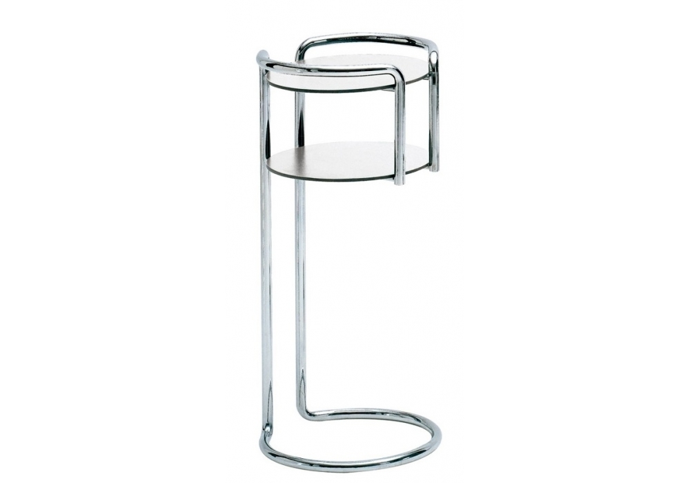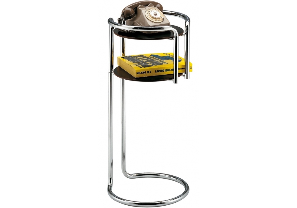 340 Chichibio von Gino Levi Montalcini e Giuseppe Pagano Pogatschnig für Zanotta entworfen, ist eine ständer für gegenstände oder fürs telefon mit Gestell aus verchromtem Stahlrohr. Platten aus Schichtpress-Stoff Laminat, weiß/schwarz.