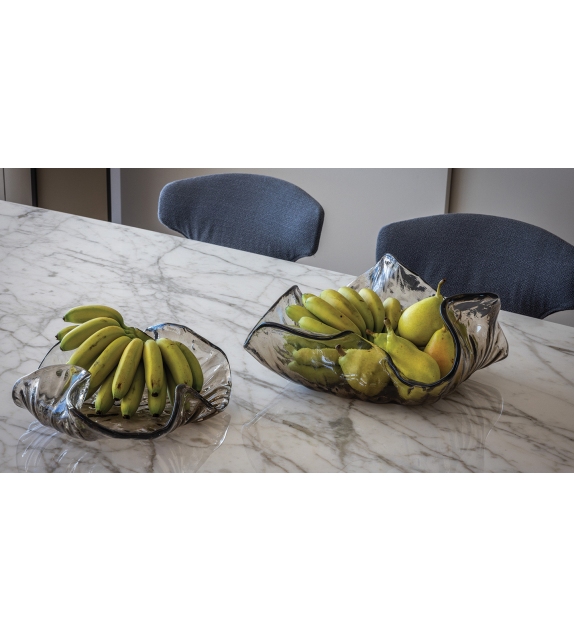 Gli Oggetti - Water Illusion von Assia Karaguiozova für Poltrona Frau sind Unikate, Behälter wie Glasskulpturen zum Dekorieren. Vasen und Schalen mit der gleichen Materialsprache, die mit der Umgebung, in der sie platziert sind, interagieren und ihre Funktion diversifizieren.