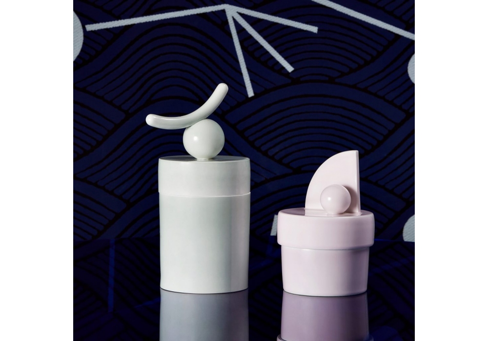 Mademoiselle Georges N°4 von Thomas Dariel für Maison Dada entworfen, ist eine zylindrische dekorative Box aus seladongrün bemalter Keramik.