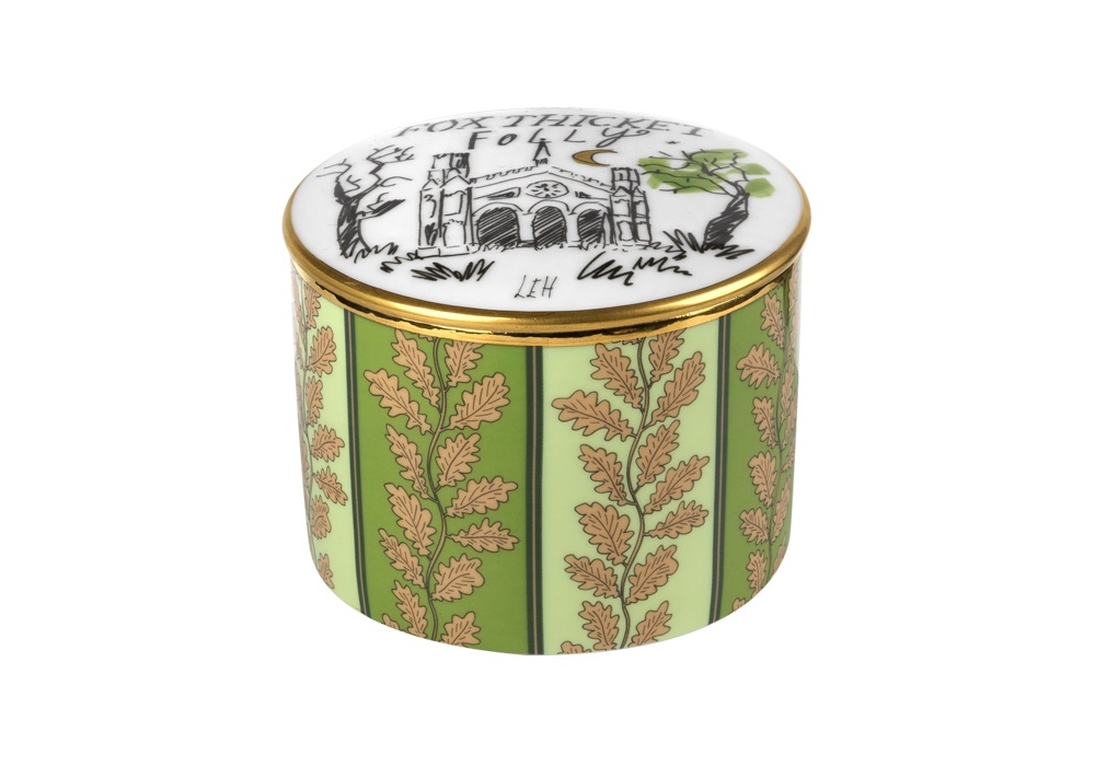 Fox Thicket Folly von Luke Edward Hall für Ginori 1735 entworfen, ist ein dekoriertes Schmuckkästchen mit Deckel aus reinem Porzellan.