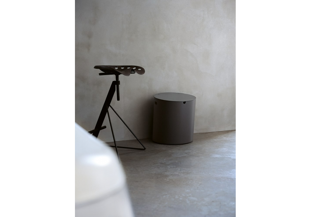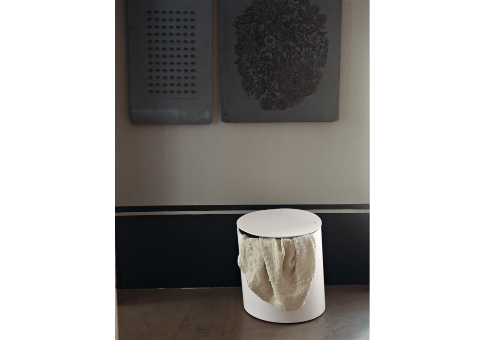 Basket von Benedini Associati für Agape entworfen, ist ein Behälter aus gebogenem Birkensperrholz mit Bezug in verschiedenen Ausführungen. Komplett mit Deckel. Kann auch als Hocker verwendet werden.