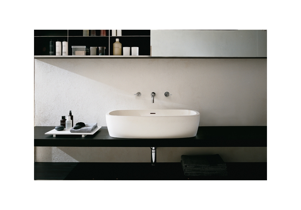 Deep von Benedini Associati für Agape entworfen, ist ein geformtes Aufsatzwaschbecken aus Cristalplant® biobased oder Marmor in verschiedenen Ausführungen. Ohne Hahnloch, mit Überlaufloch. Mit Abfluss.