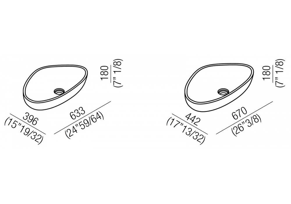 Drop von Benedini Associati für Agape entworfen, ist ein geformtes Aufsatzwaschbecken aus Cristalplant® biobased oder Marmor in verschiedenen Ausführungen. Es gibt kein Hahnloch, mit freiem Abfluss. Das Waschbecken, das in zwei Größen erhältlich ist, ist mit einem Abfluss mit einer Kappe ausgestattet, die bündig mit der Innenform des Waschbeckens abschließt und in der gleichen Ausführung wie das Waschbecken ist.