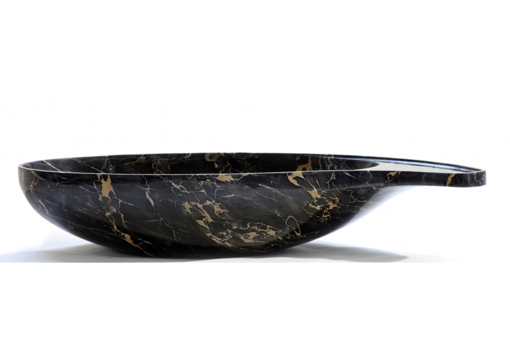 Cashmere von Enzo Berti für Kreoo entworfen, ist ein Waschbecken mit ovaler Schale und seitlicher Ablagefläche. Komplett aus Marmor.