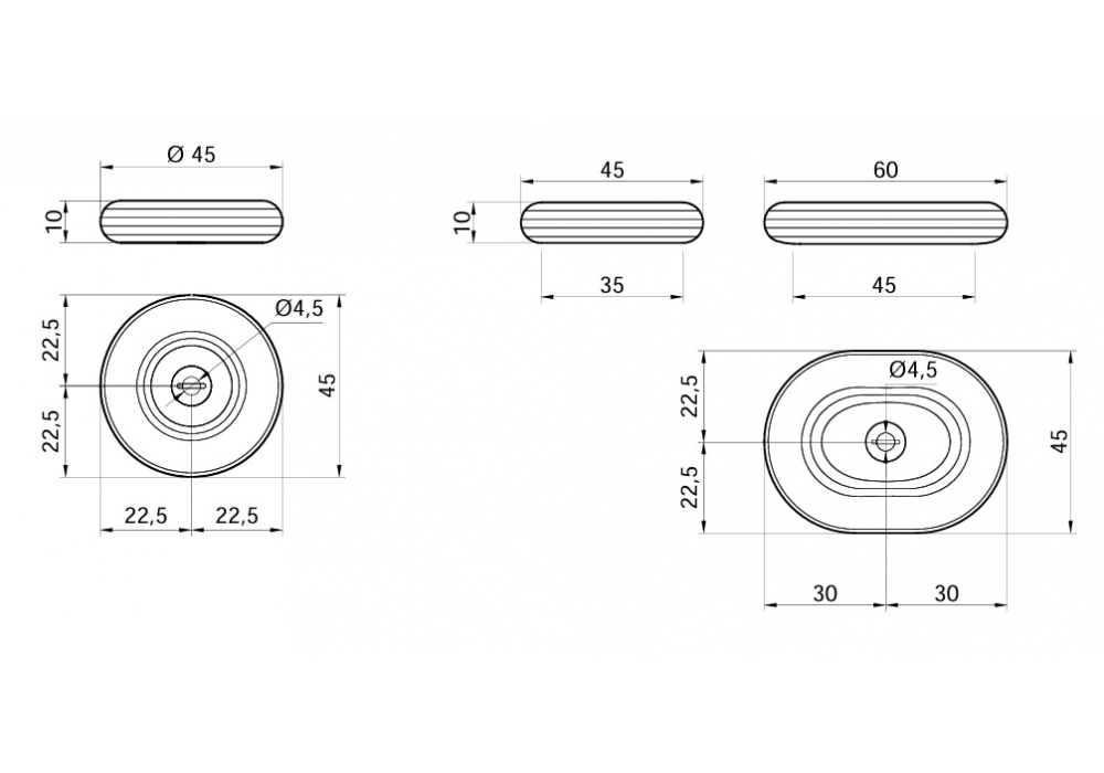 | Abmessungen | Ø 45 x H 10 cm; 60 x 45 x H 10 cm. |