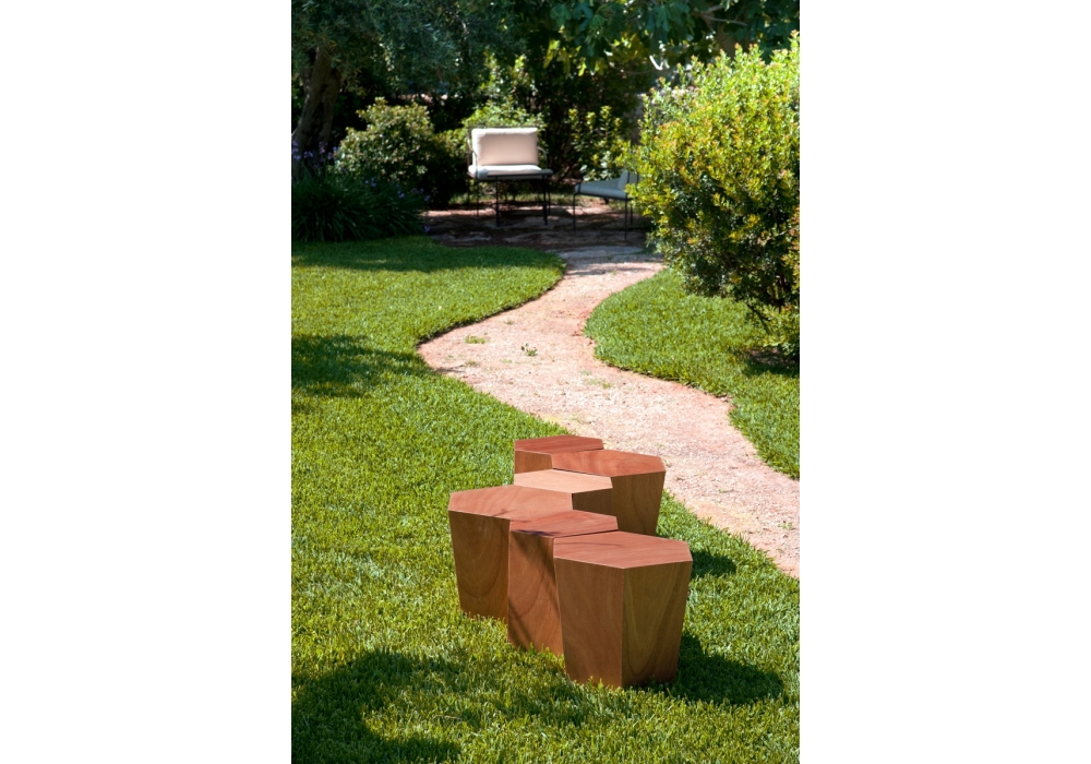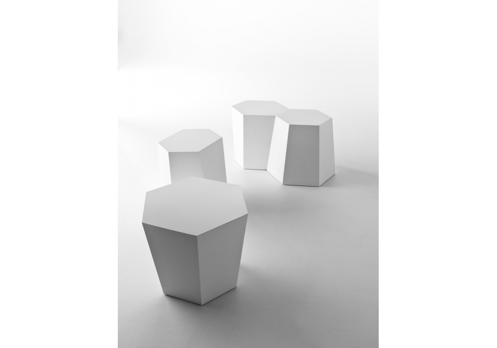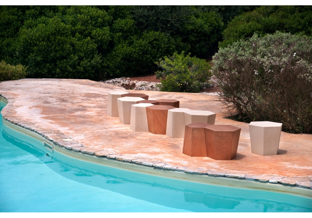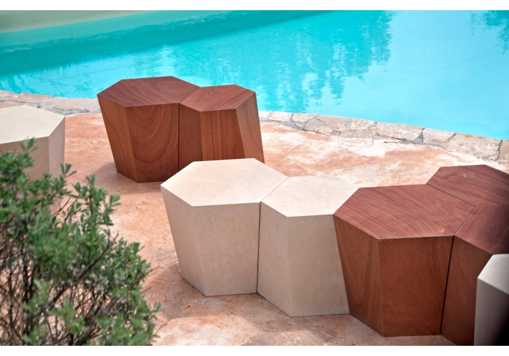 Hexagon von Steven Holl für Casamania & Horm entworfen, ist ein Couchtisch / Hocker aus Lecce-Stein oder Okume-Holz Multiplex. Verfügbar in 2 Abmessungen.