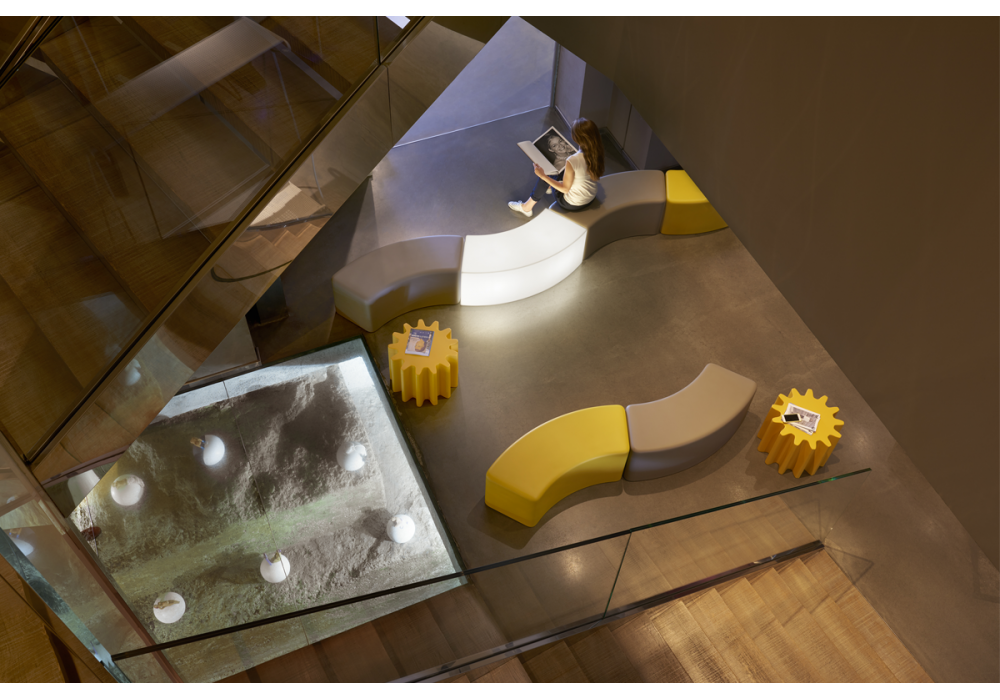 Gear von Anastasia Ivanyuk für Slide entworfen, ist ein Hocker oder Couchtisch aus Polyethylen. Verfügbar in mehreren Ausführun.