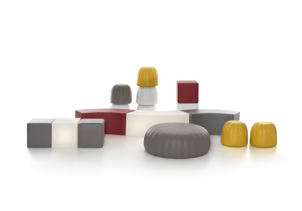 Soft Cubo von SLIDE Studio für Slide entworfen, ist ein Hocker aus sehr widerstandsfähigem weichem Polyurethan dank des Vorhandenseins eines internen Metallrahmens; Darüber hinaus ist es wasserdicht, feuerfest und leicht abwaschbar, wodurch es sich sowohl für den Innen- als auch für den Außenbereich perfekt eignet. Erhältlich in verschiedenen Ausführungen