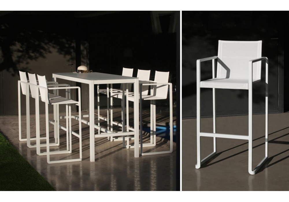 Alura von Kris Van Puyvelde für Royal Botania entworfen, ist ein Bar Hocker aus pulverbeschichtetem Aluminium, Sitz und Rückenpolster aus Batyline®, verfügbar in verschiedenen farbkombinationen.