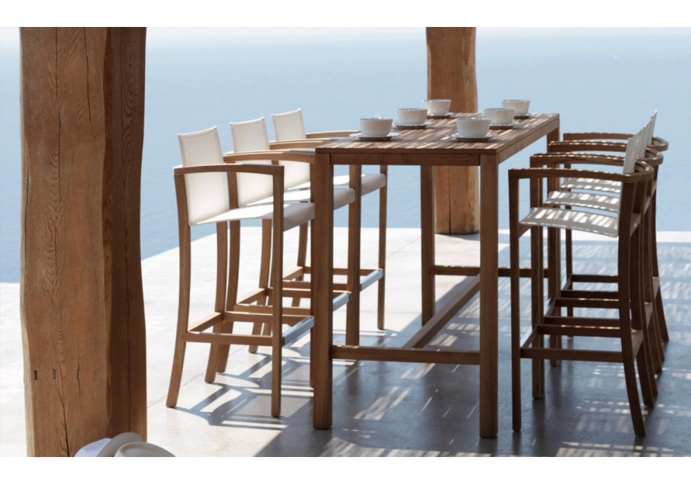 XQT, von Kris Van Puyvelde für Royal Botania entworfen, ist ein Bar hocker mit Teakholzstruktur. Sitz und Rückenlehne aus Batyline® verfügbar in 3 Farben.