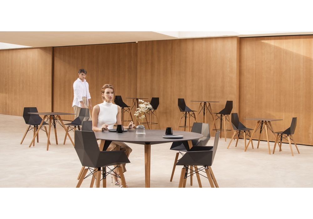 Faz Wood von Ramón Esteve für Vondom entworfen, ist ein Hocker aus Buchenholzbeinen. Erhältlich mit oder ohne Armlehnen und in verschiedenen Höhen. Bitte vermeiden Sie direkte Sonnen- und Regeneinwirkung.
