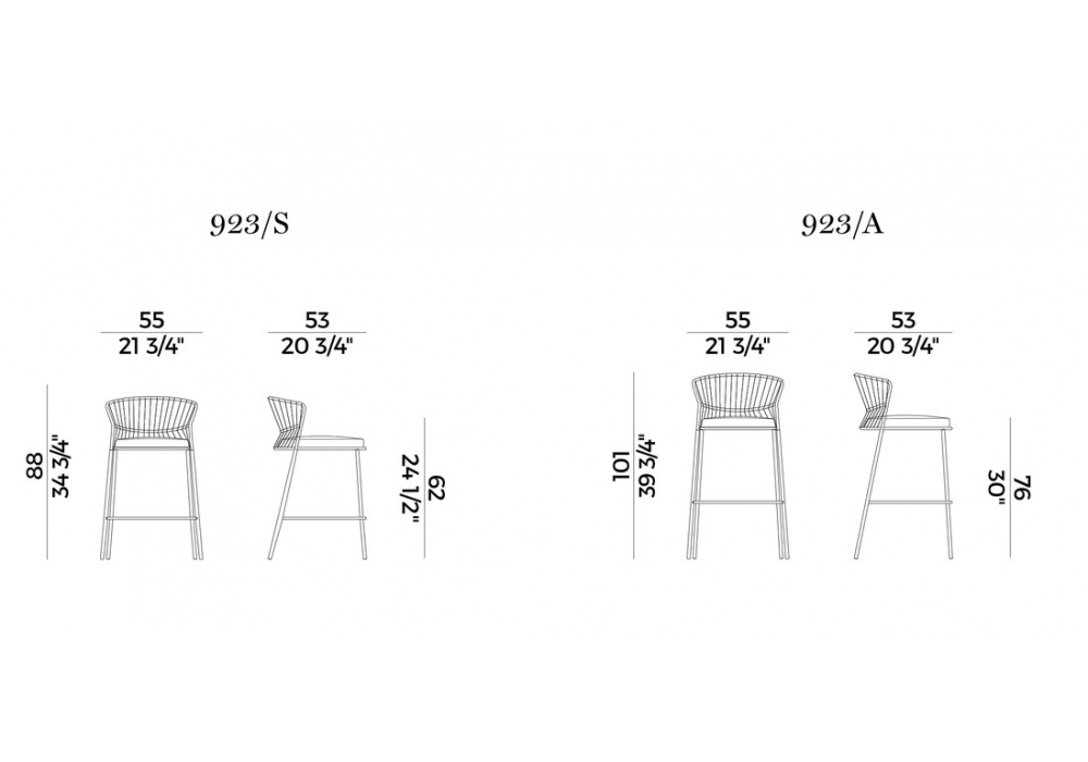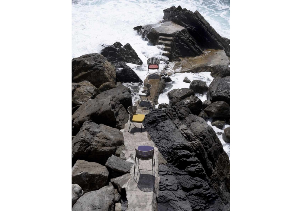 Ola, von Radice Orlandini für Potocco entworfen, ist ein Hocker für den Außenbereich, der vollständig aus lackiertem Metall in verschiedenen Ausführungen besteht. Sitzfläche und Rückenlehne sind mit einem 8 mm Fliegenseilgewebe bezogen. Ola ist in zwei verschiedenen Größen erhältlich.