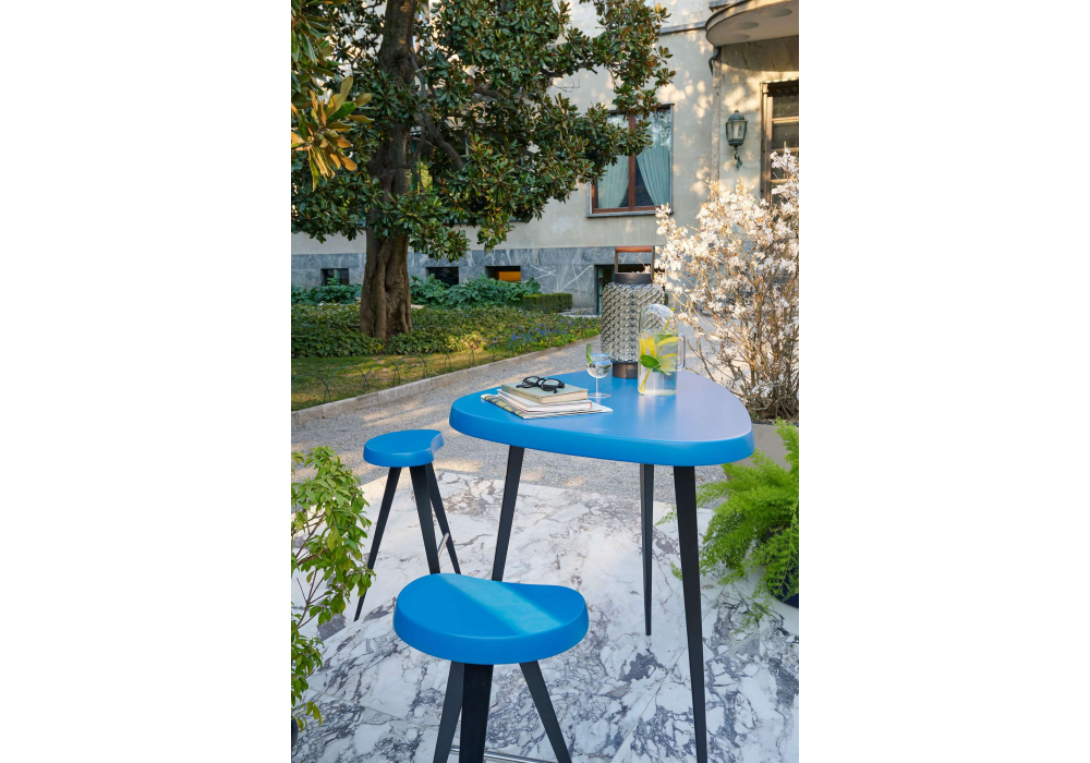 542 Mexique Stool Outdoor von Charlotte Perriand für Cassina entworfen, ist ein Hocker mit matt lackierter Sitzfläche und matt schwarz lackierten Edelstahlbeinen. Verfügbar in mehreren Ausführungen und Abmessungen.