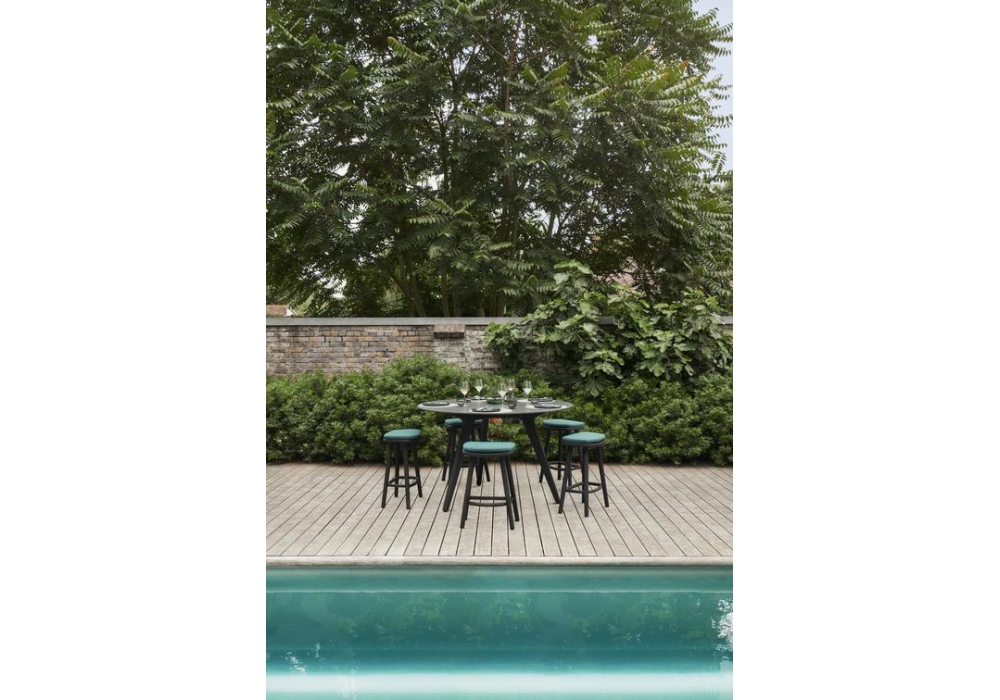 Solid von Lionel Doyen für Manutti entworfen, ist ein Hocker mit Teakholzstruktur und Bezug in verschiedenen Ausführungen. Erhältlich in verschiedenen Größen.