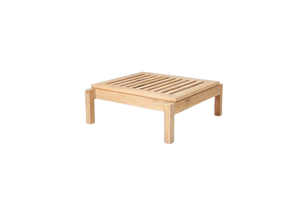 AH604F von Alfred Homann für Carl Hansen & Søn entworfen, ist ein Fußhocker für den Außenbereich mit Gestell aus massivem Teakholz. Erhältlich mit oder ohne Kissen, bezogen mit Stoff Agora Life Oat 1760.