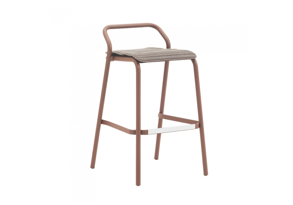 Noss, von Edoardo Gherardi für Varaschin entworfen, ist ein Hocker mit Struktur aus Aluminiumrohr und Sitz aus pulverbeschichtetem dickem Aluminiumblech. Optionales Kissen mit Outdoor-Polsterung. Erhältlich in verschiedenen Ausführungen und in zwei Größen.