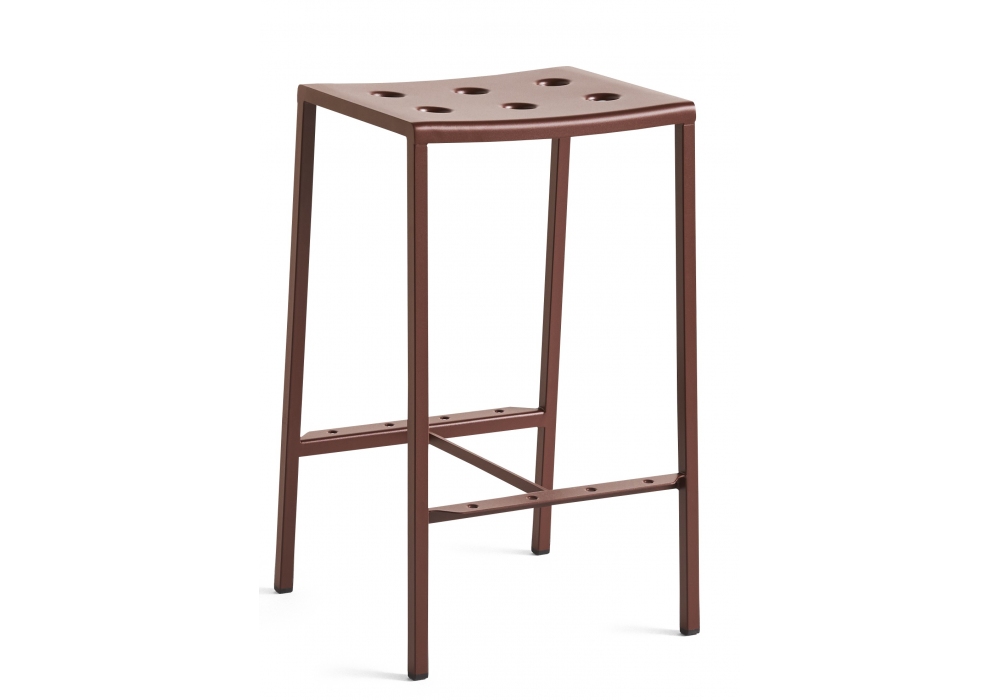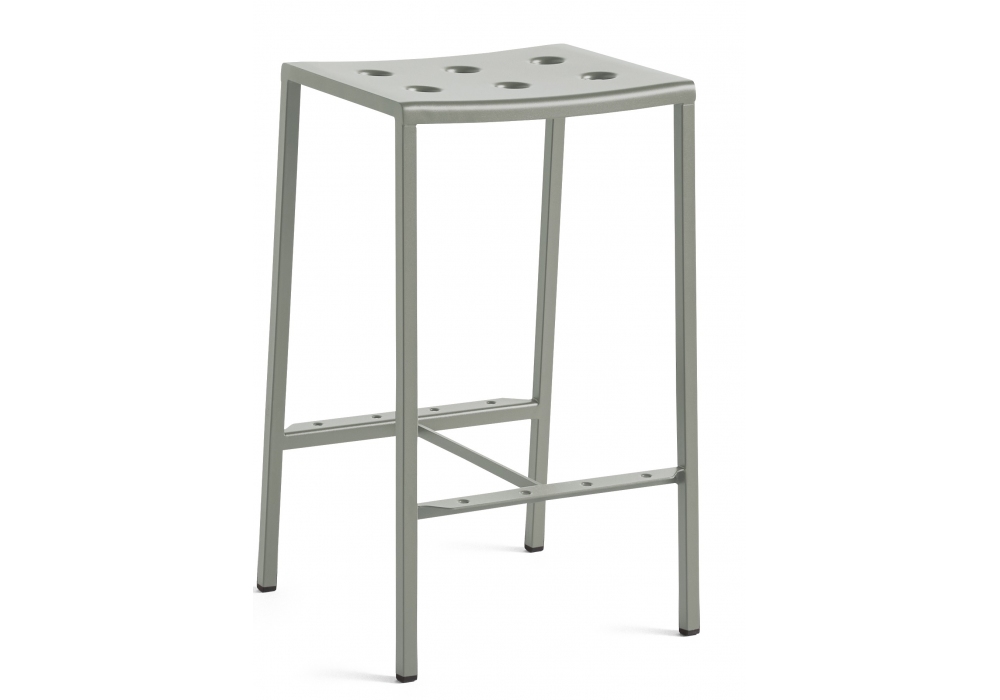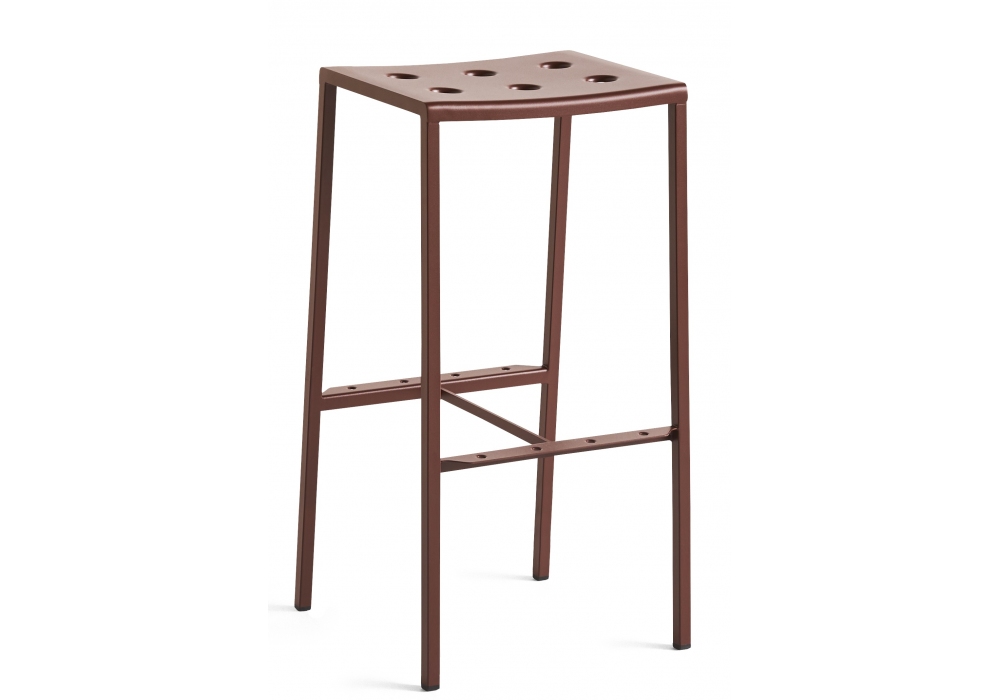 Balcony von Ronan & Erwan Bourrollec für Hay entworfen, ist ein Outdoor-Barhocker aus pulverbeschichtetem Stahl mit Zweikomponentenbeschichtung; Eine Grundierung und Pulverbeschichtung für den Außenbereich, die eine Barriere gegen korrosive Elemente bietet und es für den Außenbereich geeignet macht. Erhältlich in verschiedenen Ausführungen und Abmessungen. Auf Wunsch besteht die Möglichkeit, ein Sitzkissen hinzuzufügen.