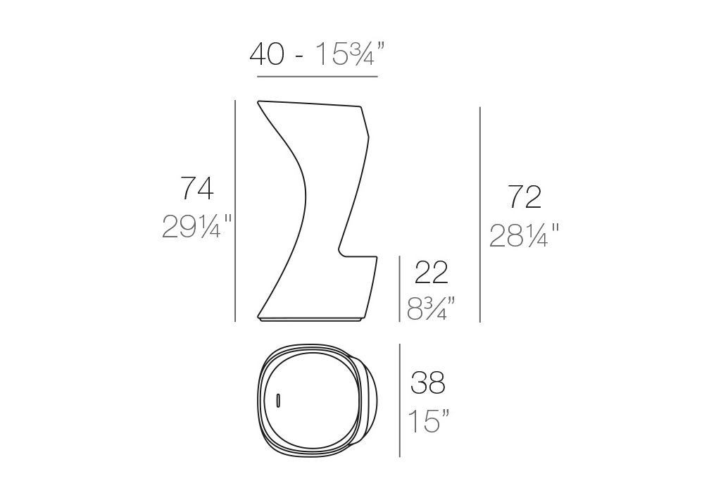 Noma High von Javier Mariscal für Vondom entworfen, ist ein Barhocker aus Polyethylenharz mit mattem oder lackiertem Finish oder mit interner RGBW-LED-Beleuchtung mit Batterie. Verfügbar in mehreren Ausführungen.
