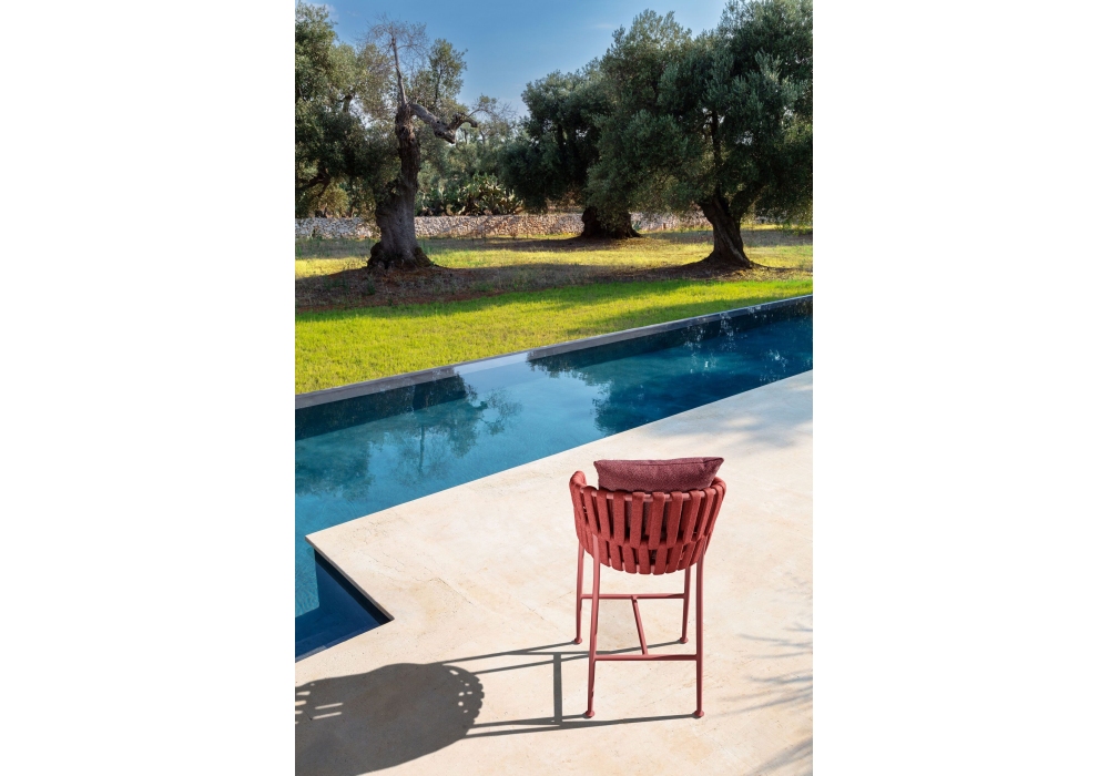 Frame von Ludovica & Roberto Palomba für Talenti entworfen, ist ein Barhocker aus Aluminium, mit Stoff bezogen. Erhältlich in verschiedenen Ausführungen.