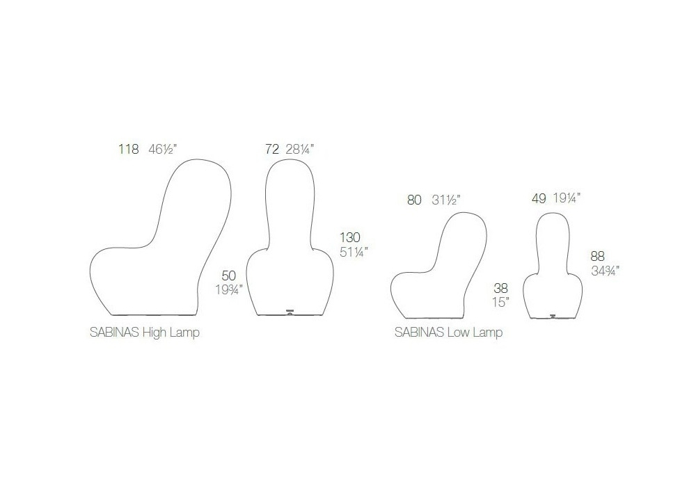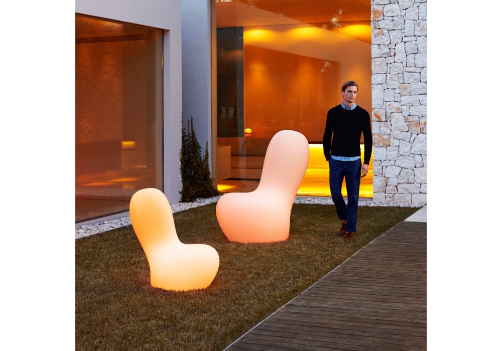 Sabinas von Javier Mariscal für Vondom entworfen, ist eine Stehleuchte. Sein ganz besonderes Design, inspiriert von organischen Formen, eliminiert gerade Linien vollständig und gibt den künstlerischen Geschmack und die schriftstellerische Prägung seines Designers deutlich frei. Aus Polyethylenharz hergestellt, ist Sabinas zu 100 % recycelbar und sowohl für den Innen- als auch für den Außenbereich geeignet.