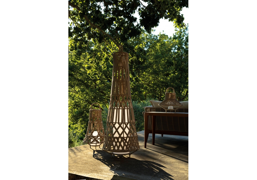 Tribal für Talenti entworfen, ist eine Stehleuchte aus Aluminium und Seil, die in verschiedenen Ausführungen und Größen erhältlich ist.