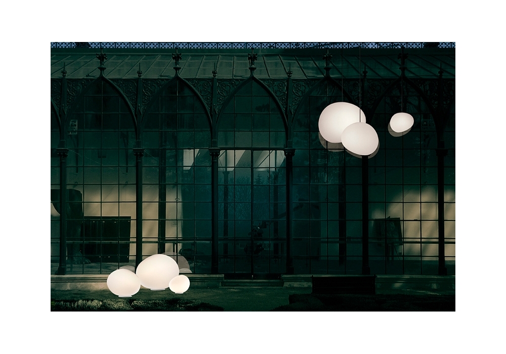 Gregg Outdoor von Ludovica und Roberto Palomba für Foscarini entworfen, ist eine runde Hängeleuchte für den Außenbereich mit tragender Struktur aus Metall. Der Diffusor besteht aus weißem mundgeblasenem Glas mit geätzter Oberfläche und schirmt eine LED- oder Halogenlichtquelle mit E27-Fassung ab. Gregg Outdoor ist in verschiedenen Größen erhältlich.
