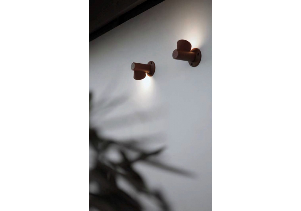Bruco, von Studio Natural für Martinelli Luce entworfen, ist eine Außenwandleuchte mit Struktur aus lackiertem röhrenförmigem Druckgussaluminium. Als Lichtquelle wird eine integrierte LED verwendet. Bruco ist in verschiedenen Ausführungen und Ausführungen erhältlich.