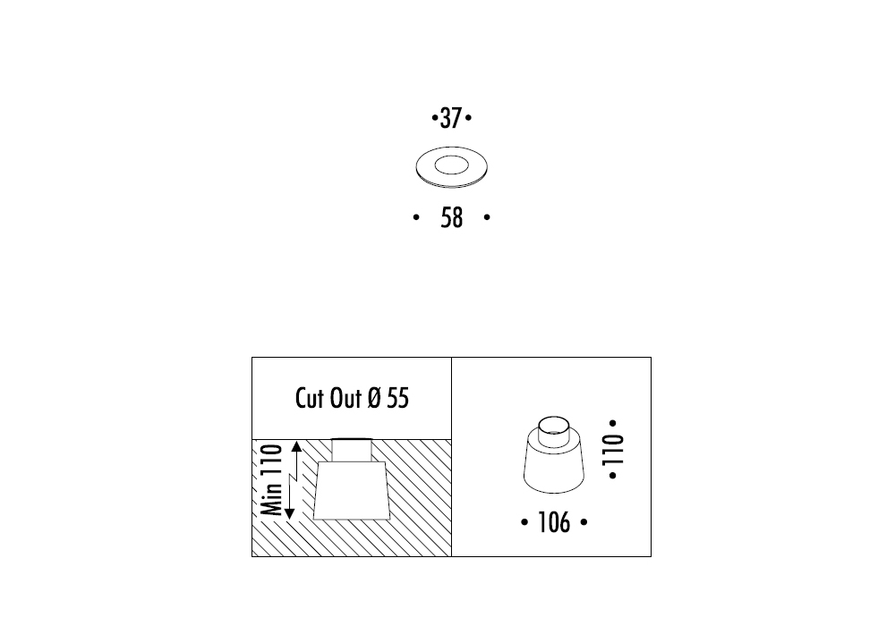 Out 58 entworfen und hergestellt von Davide Groppi, ist eine Außeneinbauleuchte, die hauptsächlich aus poliertem Edelstahl besteht. Die verwendete Lichtquelle ist vom LED-Typ. Out 58 wird mit einem Einbausatz mit Schalung und Fahrer geliefert.
