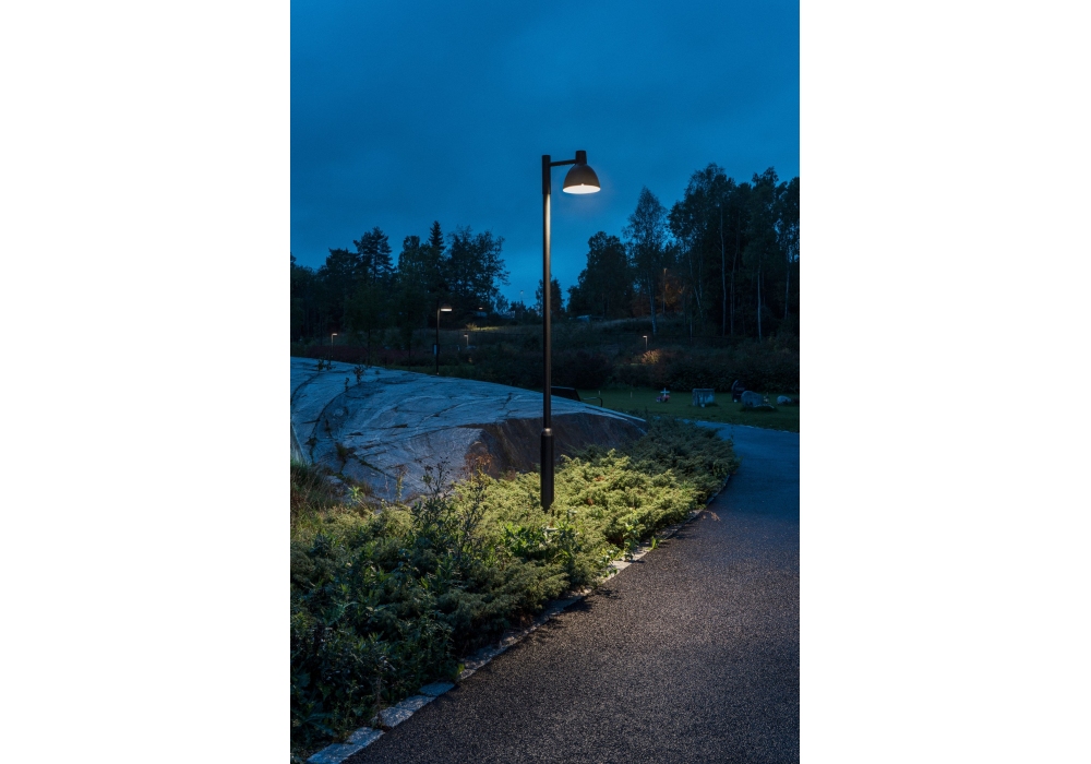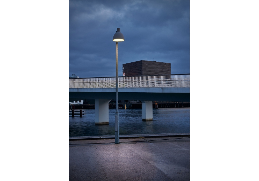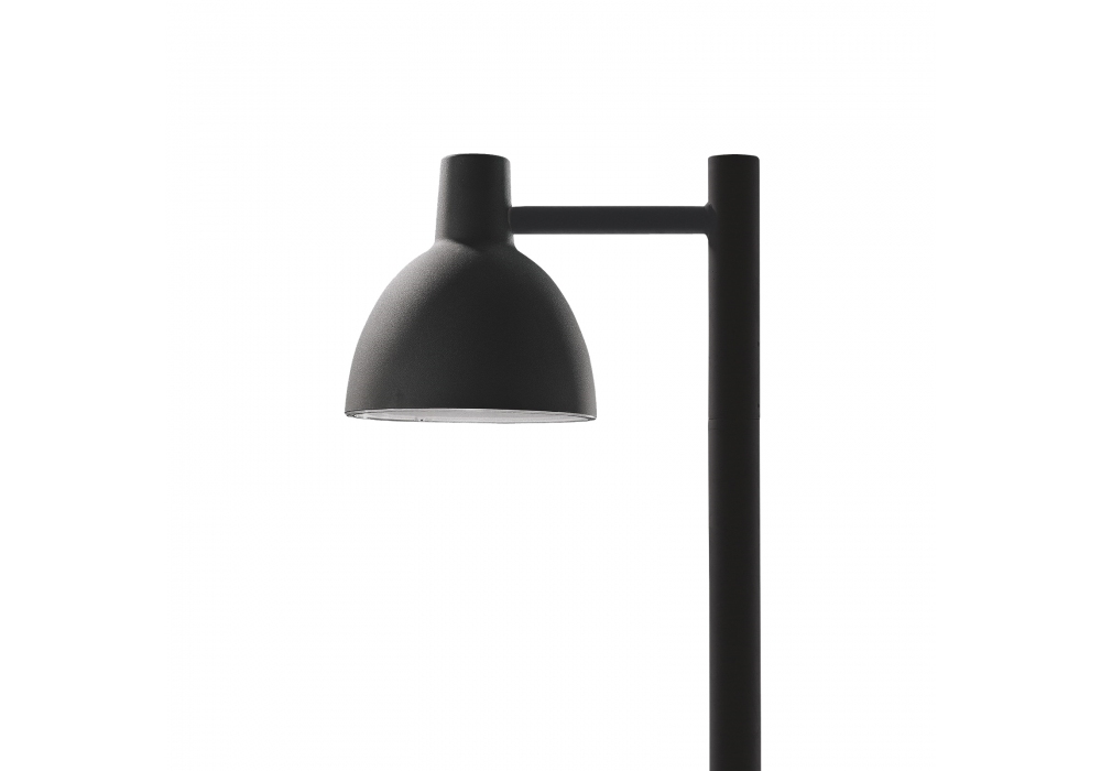 Toldbod 290 entworfen und hergestellt von Louis Poulsen ist eine Stehleuchte für den Außenbereich mit tragender Struktur aus Aluminium-Druckguss, pulverbeschichtet in verschiedenen Ausführungen. Der Diffusor ist aus transparentem Polycarbonat und schirmt eine dimmbare LED-Lichtquelle in verschiedenen Ausführungen und Lichtabstufungen ab.