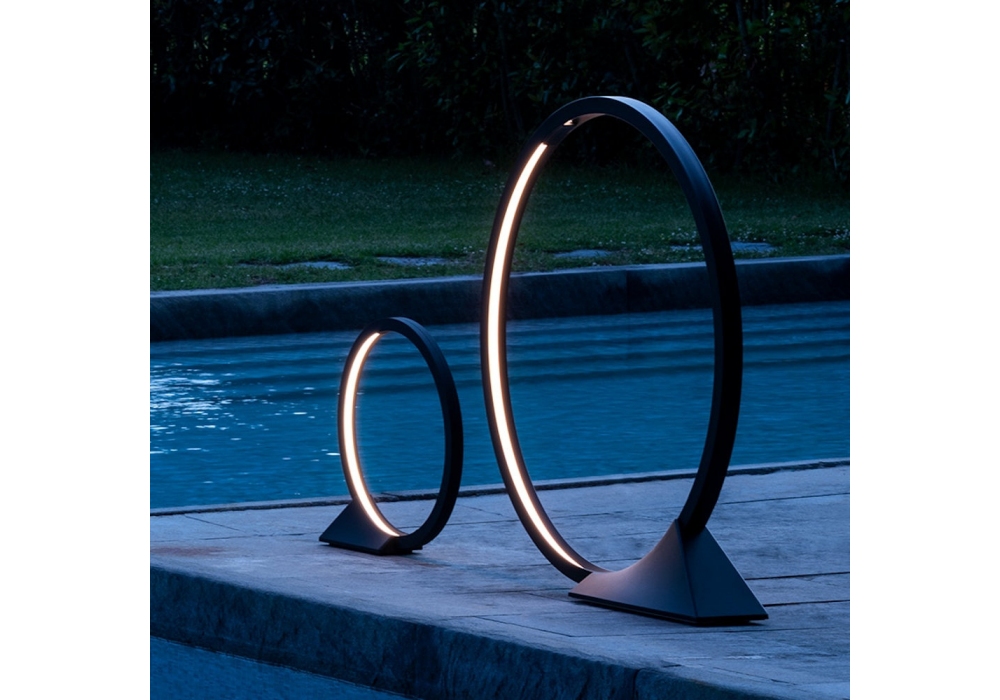 "O“ von Elemental für Artemide entworfen ist eine LED-Stehleuchte für den Außenbereich mit schwarz lackierter Aluminiumstruktur und Silikondiffusor. "O“ ist in verschiedenen Größen erhältlich.