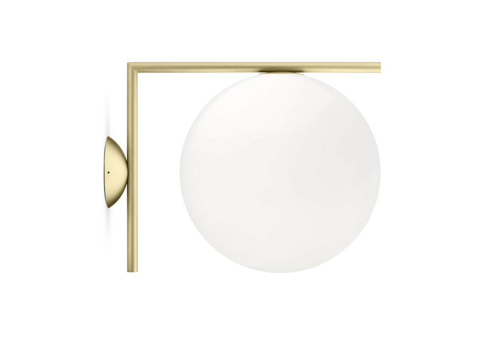 IC C/W2 von Michael Anastassiades für Flos entworfen, ist eine Wand-/Deckenleuchte mit diffusem Licht. Gestell aus Messing, gebürstetem und transparent lackiertem oder verchromtem Stahl. Opaler Diffusor aus geblasenem Glas. Leuchtmittel nicht enthalten.