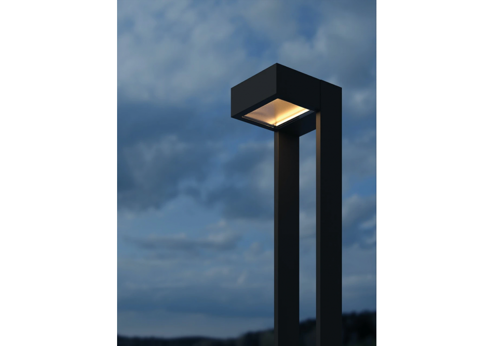 Mile Bollard 2 Double von Antonio Citterio für Flos entworfen ist eine Stehleuchte für den Außenbereich mit viereckiger Struktur aus lackiertem extrudiertem Aluminium. Die Diffusoren bestehen aus transparentem Polycarbonat mit LED-Lichtquellen. Mile Bollard 2 Double ist in verschiedenen Größen, Ausführungen, Lichtquellenschirmen und Dimmbarkeit erhältlich.