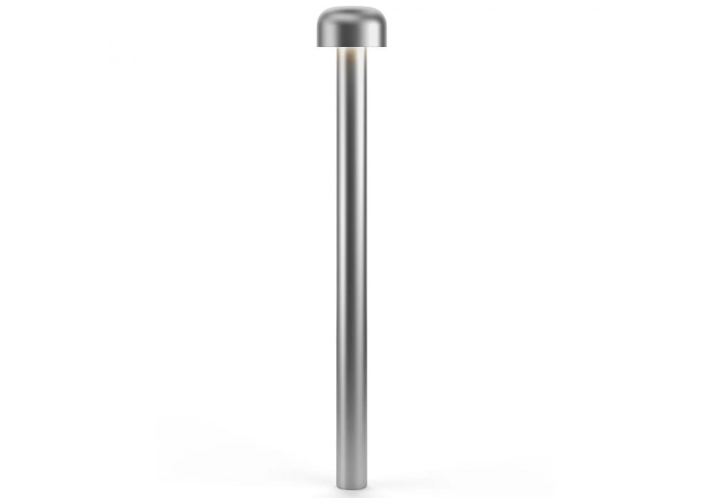 Bellhop Bollard von Edward Barber & Jay Osgerby für Flos entworfen, ist eine Stehleuchte für den Außenbereich mit zylindrischer Struktur aus Aluminium oder Stahl, erhältlich in verschiedenen Ausführungen. Die verwendete Lichtquelle ist vom Typ LED mit verschiedenen Dimmbarkeitsversionen und Lichtschirmen.
