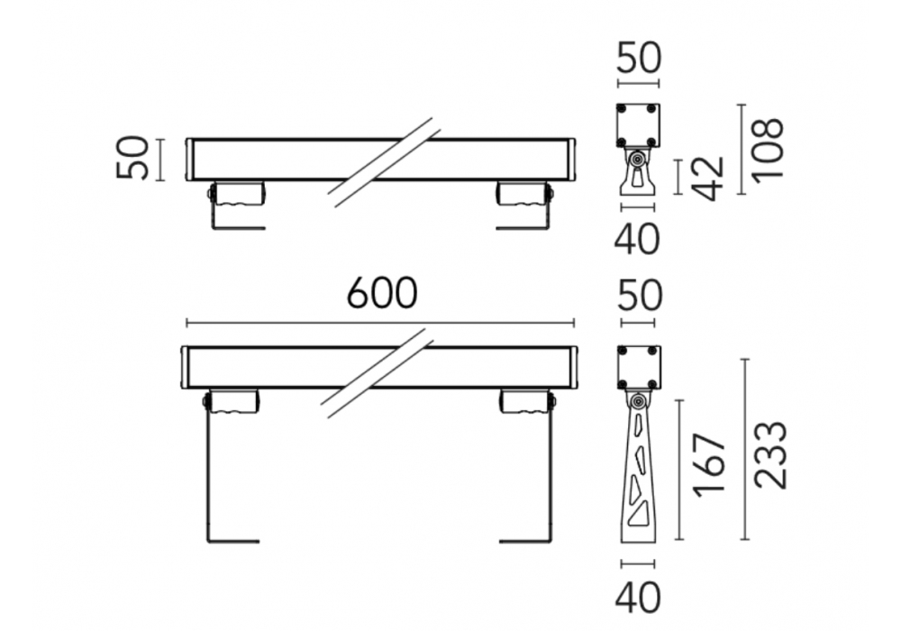 Outgraze 50 L 60 Non Dim von Flos entworfen, ist eine Außen Wand/Deckenleuchte, mit viereckiger Struktur aus Aluminiumdruckguss, verfügbar in verschiedenen Ausführungen. Der Diffusor ist aus transparentem Glas mit LED-Lichtquelle, erhältlich in verschiedenen Versionen und Lichtschattierungen.