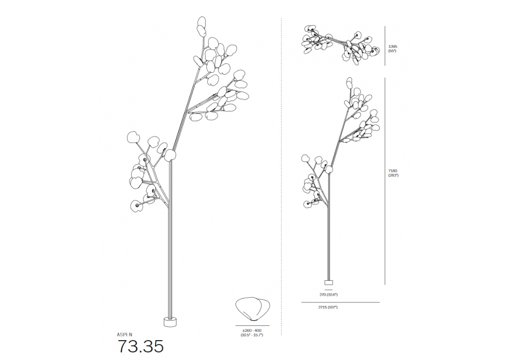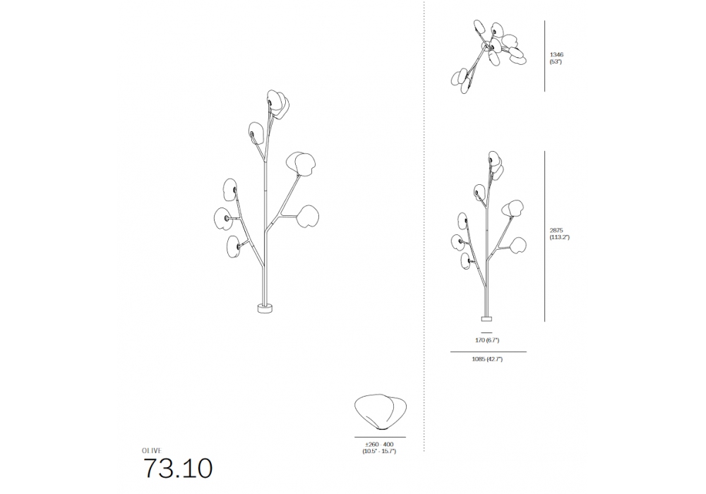 73 Trunk von Omer Arbel für Bocci entworfen, ist eine Stehleuchte für den Außenbereich. Die Struktur ist aus Edelstahl und simuliert die Form eines Baumes mit einer zylindrischen Basis für eine perfekte Verankerung im Boden. Die Zweige sind mit Diffusoren aus mundgeblasenem Glas mit LED-Lichtquellen ausgestattet. 73 ist in verschiedenen Ausführungen erhältlich.