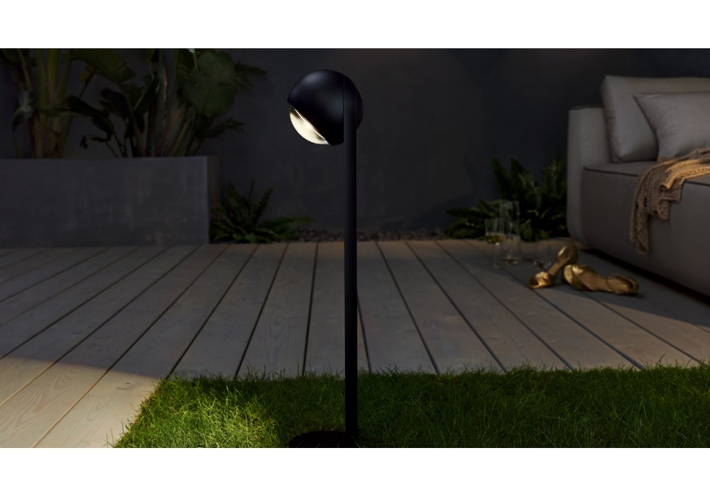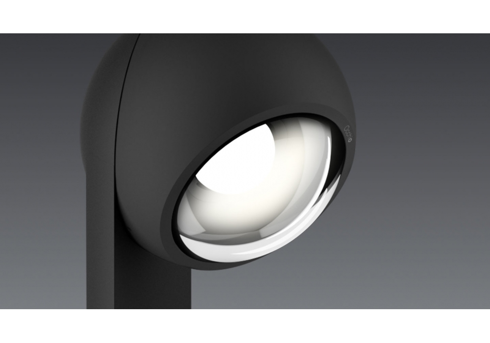 Sito Palo von Occhio entworfen, ist eine Outdoor LED Pollerleuchte mit kugelförmigem Kopf (bis 45° nach links und rechts verstellbar) und einseitigem Lichtaustritt. Verfügbar in mehreren Ausführungen. Die Lichtwirkung kann beim Kauf entschieden werden.