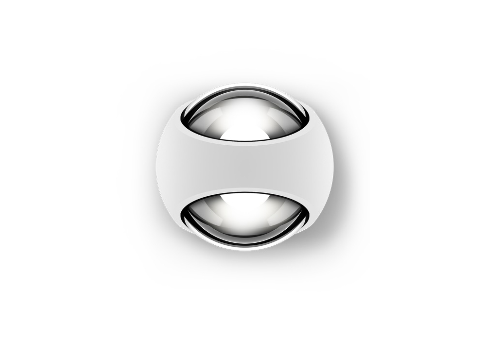 Sito Verticale von Occhio entworfen, ist eine LED-Außenwandleuchte mit kugelförmigem Diffusor und beidseitigem Lichtaustritt (vertikal oben / unten). Die Wirkung des Lichts kann beim Kauf entschieden werden. Verfügbar in mehreren Ausführungen.