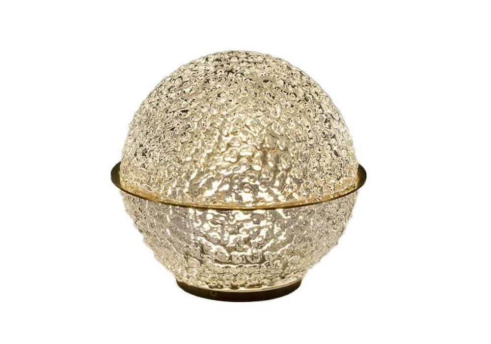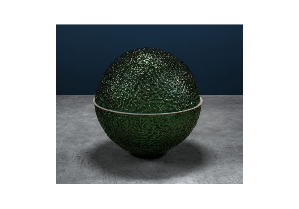 Medousê F von Enzo Catellani für Catellani & Smith entworfen, ist eine dimmbare LED-Stehleuchte für den Außenbereich in Form einer unregelmäßigen grünen oder transparenten Glaskugel. Die Details sind aus Messing.