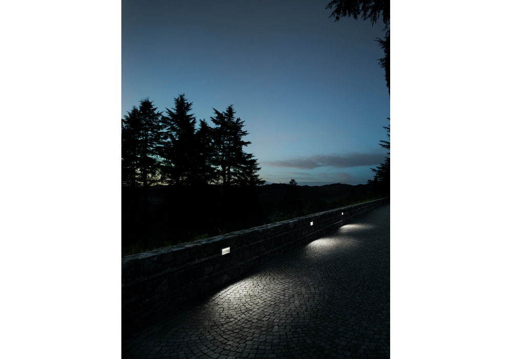 Mile Path 2 von Antonio Citterio für Flos entworfen, ist eine Außenwandleuchte mit viereckiger Struktur aus lackiertem Aluminium in verschiedenen Ausführungen. Die Lichtquelle ist LED in verschiedenen Lichtschattierungen und Dimmbarkeit.