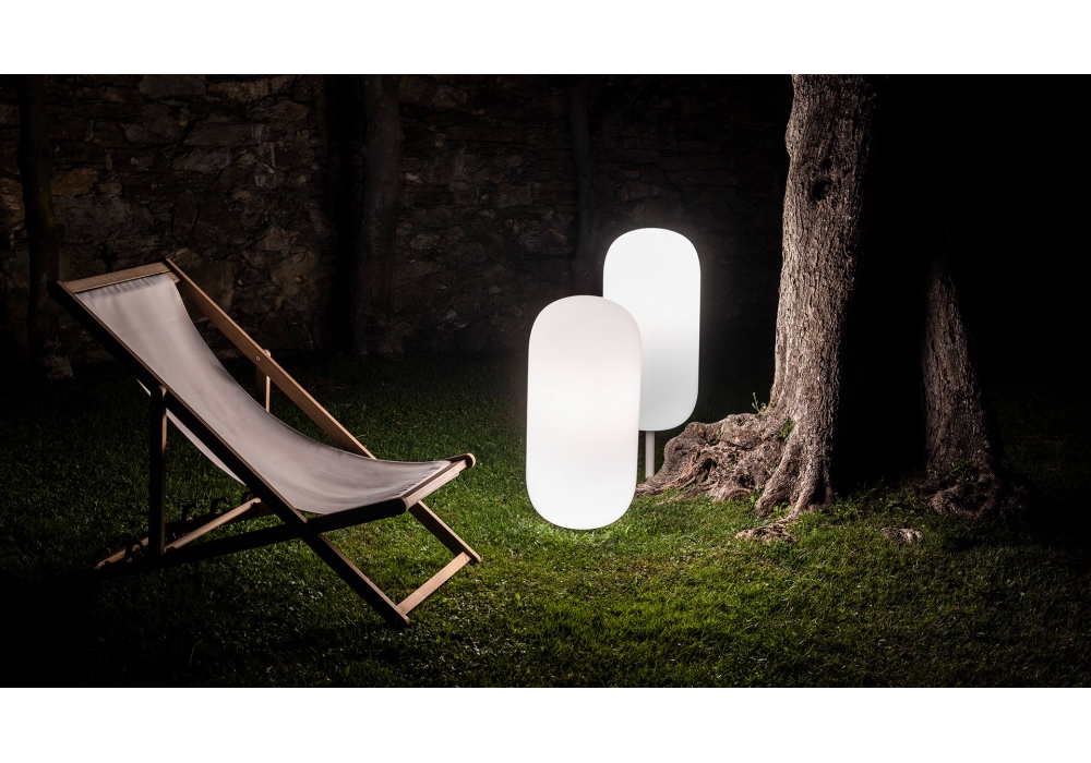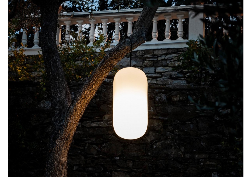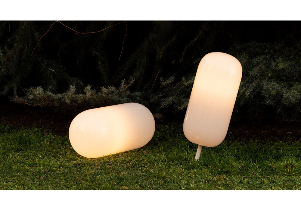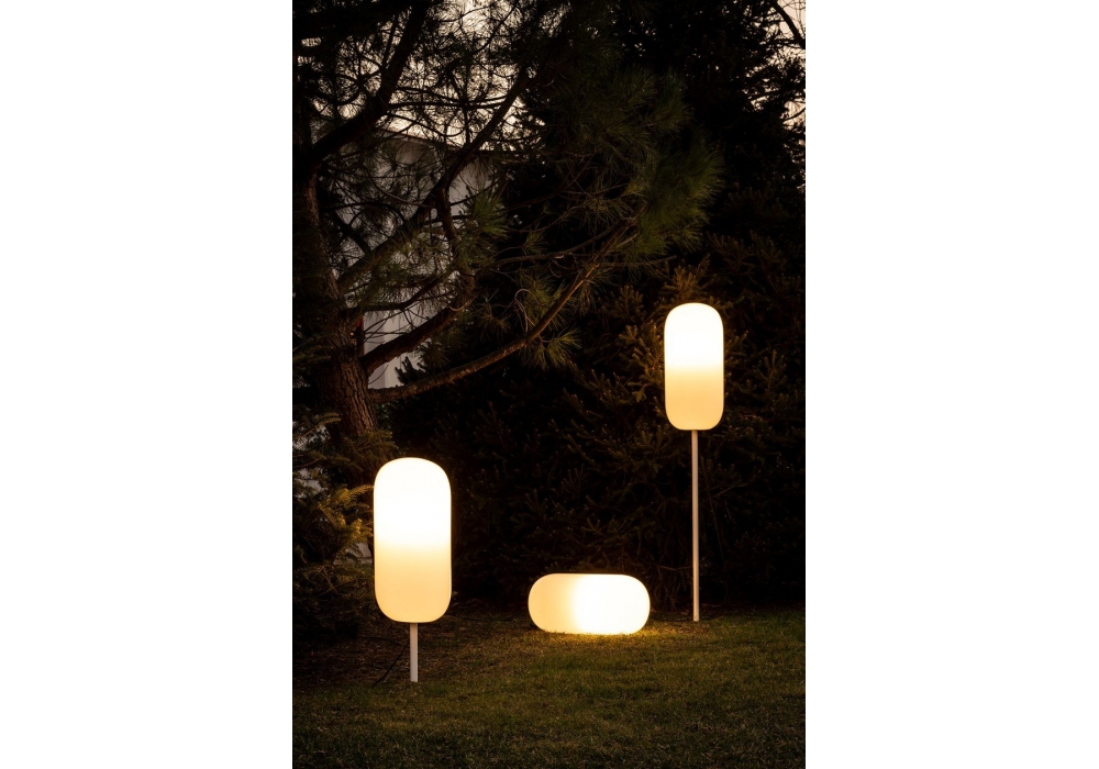 Gople von BIG - Bjarke Ingels Group für Artemide entworfen, ist eine Außenleuchte. Der Diffusor hat eine zylindrische Form aus rotationsgeformtem Polyethylen mit glänzender Oberfläche. Die verwendete Lichtquelle ist LED Retrofit (nicht im Lieferumfang enthalten). Google ist mit diversem Zubehör erhältlich.