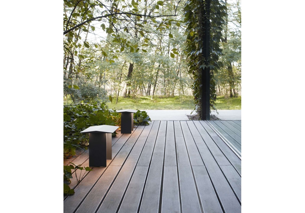 Fienile Outdoor von Daniel Rybakken für Luceplan entworfen, ist eine Außen-Stehleuchte mit Struktur aus eloxiertem Aluminium und Schirm aus Polycarbonat. Verfügbar in verschiedenen Ausführungen.